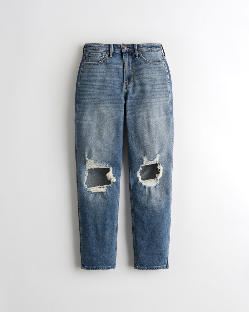 Women S Curvy High Rise Ripped Medium Wash Mom Jeans Women S Bottoms Hollisterco Com